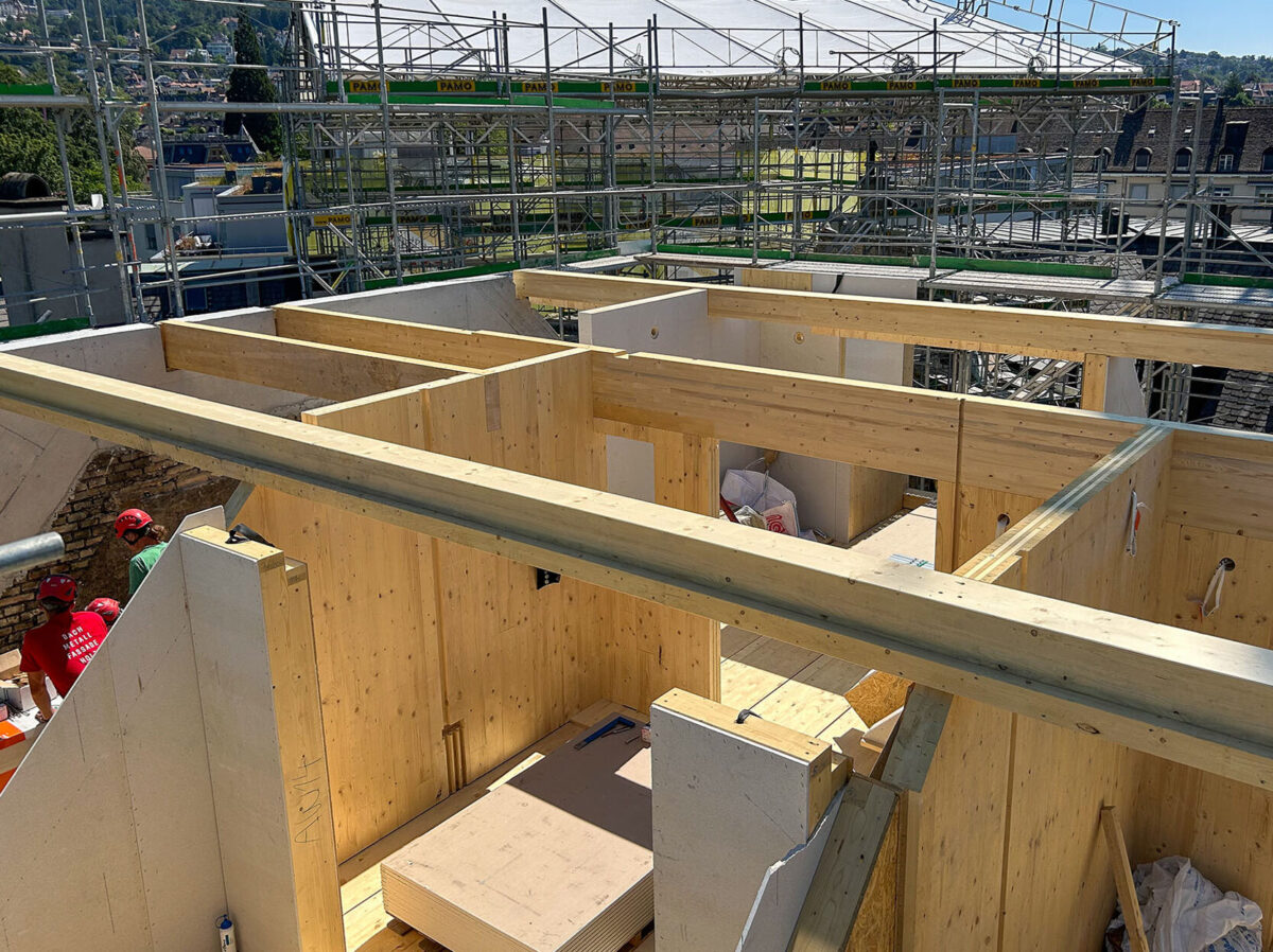 Nicht zuletzt spielt die ästhetische Wirkung von Holz eine Rolle: Holz schafft eine warme und natürliche Atmosphäre, die sowohl in Wohngebäuden als auch in öffentlichen Bauprojekten sehr geschätzt wird. Es fördert ein angenehmes Raumklima und trägt zur Lebensqualität bei. Auch darum setzen wir auf Holz beim Bauen.